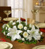 Let the holiday spirit shine bright with our classic all white centerpiece! A base of fresh greens creates the perfect backdrop for a mix of crisp lilies, roses and carnations, all hand-arranged by our expert florists. Topped off with elegant tapered candles, it's a wonderful way to wish them a Merry Christmas, say Happy Hanukkah or send your warmest wishes all throughout the season.