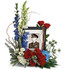 - This bouquet features blue hydrangea, red roses, red spray roses, white spray roses, white carnations, blue delphinium, white snapdragons, blue eryngium, dusty miller, curly willow, spiral eucalyptus, parvifolia eucalyptus, aralia leaf and lemon leaf.