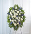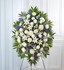 When someone so dear passes, a standing tribute is a fitting way to pay respects. Our impressive standing spray arrangement, meticulously handcrafted by expert florists with pristine white and rich blue blooms, is a lush, full presentation that makes for a proud and respectful commemoration.