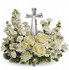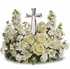 An elegant display of faith and divine peace, this beautiful arrangement will comfort the bereaved in a truly thoughtful and respectful way. An exquisite crystal cross is surrounded by a bed of lovely blossoms. It is sure to be appreciated and always remembered.