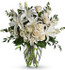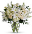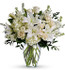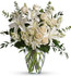 - This gorgeous bouquet overflows with white hydrangea, crème roses, white spray roses, white oriental lilies, white stock, spiral eucalyptus, salal and Italian ruscus in a classic glass vase.