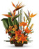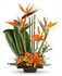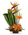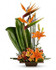 - Asiatic lilies, alstroemeria and birds of paradise are accented with red hypericum, ti leaves, galax leaves, oregonia and bamboo-like equisetum.