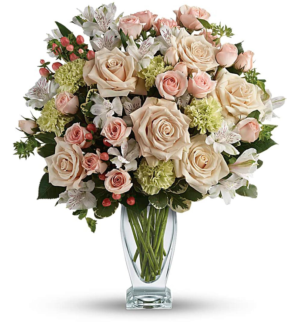 "I am thoroughly pleased with the service at Nancy's Floral! They even called me shortly after receiving my order, to get my preference on vase color. This gives me confidence that my gift will look like the picture of the selection I made. Thanks, Nancy's Floral, for the great service and product!."