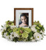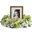 - This luxurious wreath includes flowers such as carnations, chrysanthemums, silky green cymbidium orchid blossoms and variegated greenery. Please note: Arrangement does not include picture frame.