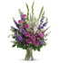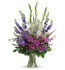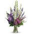 - A classic assortment of flowers such as lavender larkspur, stock and roses, plus purple asters, white gladioli and pink heather.