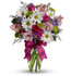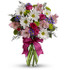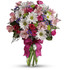 - A mix of fresh flowers such as spray roses, daisy and button spray chrysanthemums, Monte Cassino asters and limonium, in shades of white, pink, green, purple and lavender.