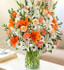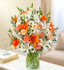 Express your sorrow with a memorable tribute: our bright and beautiful arrangement of lilies, roses, gladiolas, stock, daisy poms and more. Awash in soothing shades of peach, orange and white, it's hand-crafted by our florists in a classic vase for the home or service.