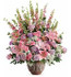 A touching tribute to a beloved woman, this beautiful, soft pink and lavender arrangement is presented in a large antiqued pot for an elegant touch.