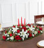 - Large arrangement features 3 12"H red taper candles; measures approximately 7"H x 15"L