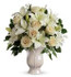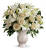 An elegant expression of support and sympathy, this wondrous array of pure white roses and lilies conveys purity and peace.